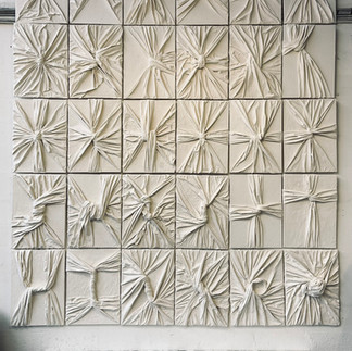 « En Liens » est le fruit de six mois de travail : un assemblage de 30 toiles explorant les dynamiques du couple. Tout commence par deux formes, l'une représentant la femme, l'autre l'homme, semblables et opposées, miroirs inversés l'une de l'autre. Les vingt-huit toiles suivantes déploient ce que ces deux entités font l'une à l'autre, comment elles se rencontrent…